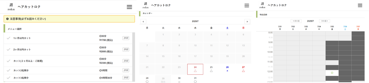 haircut roku様の予約ページ