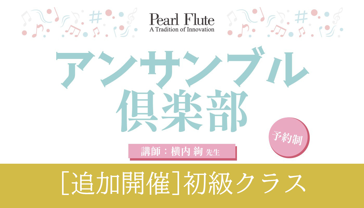 ご好評につき、急遽追加開催!既に別クラスでご予約済みの方もご参加可能です。 芸術・音楽・フルート愛好家の皆様が集う、交流の場「パールフルートギャラリー東京 アンサンブル倶楽部」 アンサンブルが初めての方も大歓迎です。課題曲の演奏を通して、「今さら聞けない音楽理論」を分かりやすく学びながら、音楽の基本を楽しく確認していきます。さらに「アンサンブルの隠し味」と題し、合奏がぐっと楽しく、スムーズになるコツも丁寧にご紹介。音楽を学び、奏で、分かち合うひとときを、ぜひご一緒にお楽しみください。 参加条件:各クラスで使用する「パールミュージック・アカデミー」の楽譜を、事前にパールフルートギャラリーまたは楽器店等にてご購入いただくか、当日パールフルートギャラリーにてお求めください。 ※教材費:¥1,650(税込)