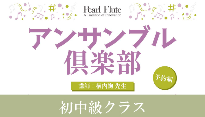 芸術・音楽・フルート愛好家の皆様が集う、交流の場「パールフルートギャラリー東京 アンサンブル倶楽部」 アンサンブルが初めての方も大歓迎です。課題曲の演奏を通して、「今さら聞けない音楽理論」を分かりやすく学びながら、音楽の基本を楽しく確認していきます。さらに「アンサンブルの隠し味」と題し、合奏がぐっと楽しく、スムーズになるコツも丁寧にご紹介。音楽を学び、奏で、分かち合うひとときを、ぜひご一緒にお楽しみください。 参加条件:各クラスで使用する「パールミュージック・アカデミー」の楽譜を、事前にパールフルートギャラリーまたは楽器店等にてご購入いただくか、当日パールフルートギャラリーにてお求めください。 ※教材費:1,100 円(税込)